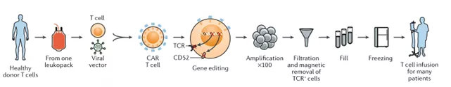 [2]Depil S, Duchateau P, Grupp SA, Mufti G, Poirot L. 'Off-the-shelf' allogeneic CAR T cells: development and challenges. Nat Rev Drug Discov. 2020 Mar;19(3):185-199.